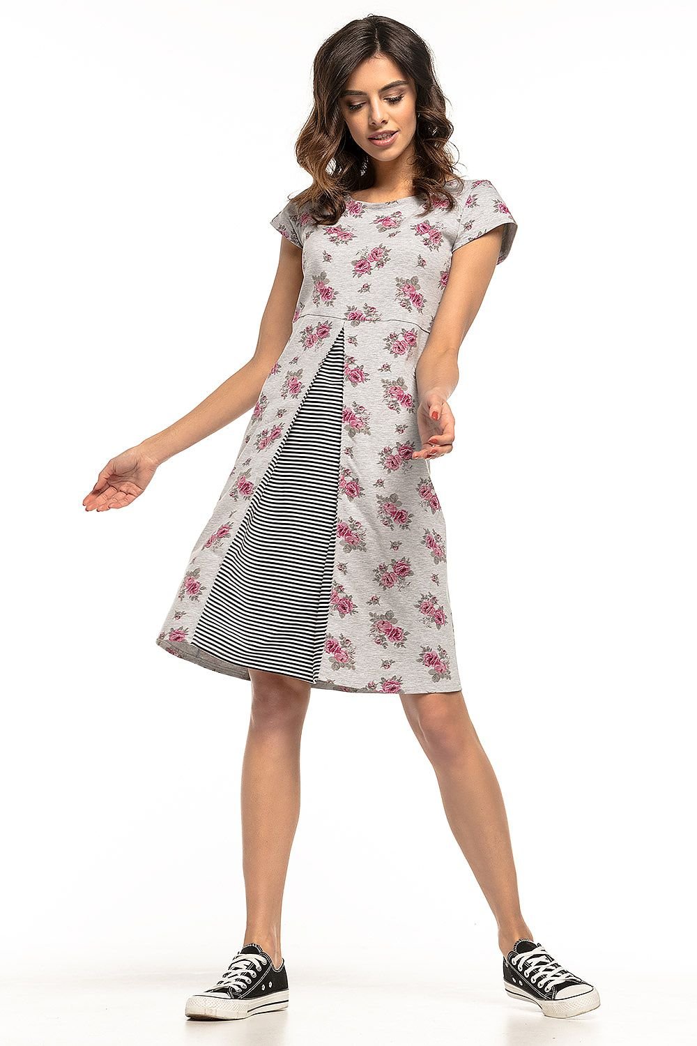 Leicht trapezförmiges Kleid aus Baumwollstrick mit einer Kellerfalte vorne. Um das florale Muster aufzulockern, haben wir die Gegenklappe mit einem zarten schwarz-weißen Streifenmuster versehen, das die Blicke auf sich zieht. Das Kleid ist nicht nur zum Spazierengehen geeignet, sondern kann auch mit auf die Urlaubsreise genommen werden.