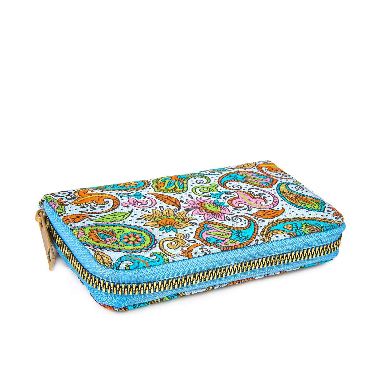 Trotz ihrer kompakten Größe bietet die Geldbörse ausreichend Platz für Münzen, Scheine und Karten. Der stabile Rundum-Reißverschluss sorgt für sicheren Halt und schnellen Zugriff. Der gewebte Stoff mit strukturierter Oberfläche liegt angenehm in der Hand und macht das Portemonnaie zu einem echten Hingucker.
