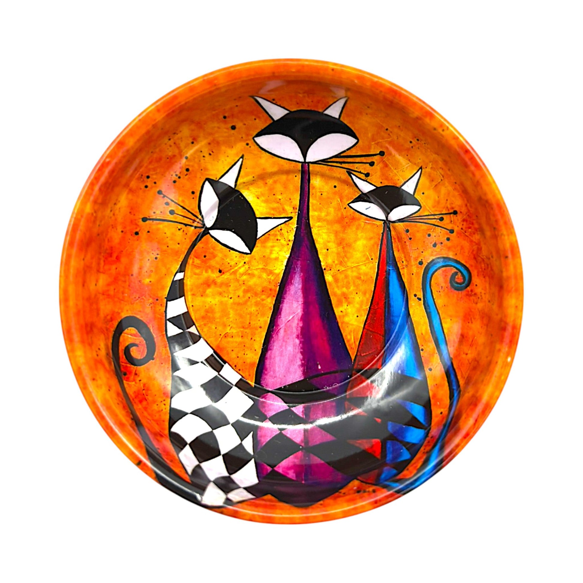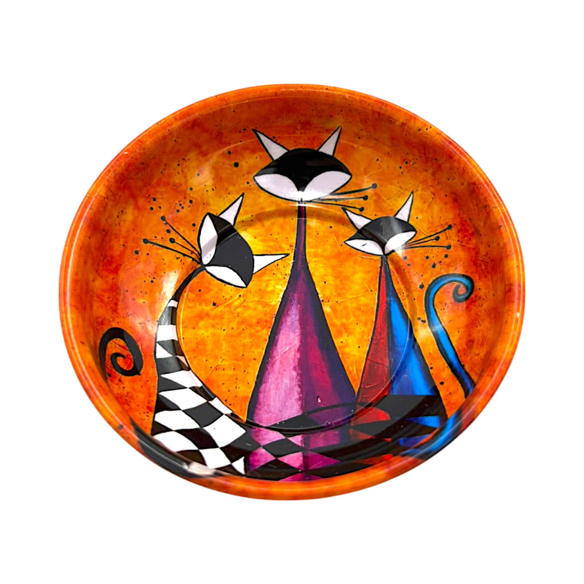 Bringe Farbe und orientalischen Charme in dein Zuhause! Diese stilvolle Blechschüssel im farbenfrohen Katzen-Design vereint Funktionalität und Design. Ob als Dekoschale, für Snacks oder als kleine Ablage – dieses Accessoire ist vielseitig einsetzbar und ein echter Blickfang.