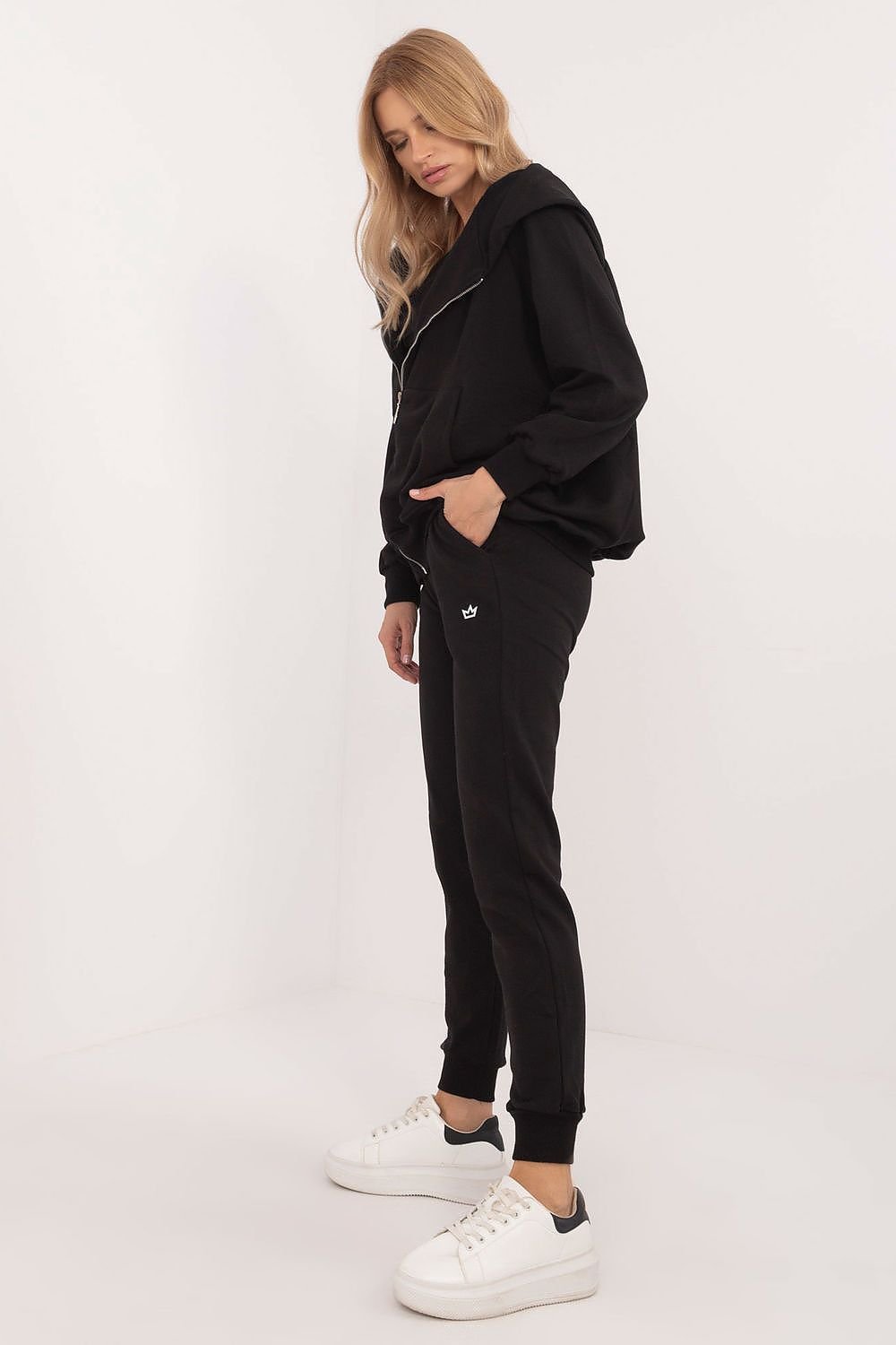 Dieser dreiteilige Damen-Jogginganzug vereint sportliche Lässigkeit mit durchdachtem Design – ideal für den täglichen Gebrauch, Spaziergänge oder leichte sportliche Aktivitäten. Das Set besteht aus einem klassischen T-Shirt, einem bequemen Hoodie mit Reißverschluss und einer langbeinigen Hose – perfekt aufeinander abgestimmt.