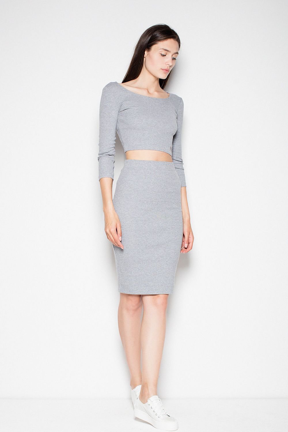 Dieses zweiteilige Baumwollset kombiniert minimalistisches Design mit femininer Ausstrahlung. Das langärmelige Crop-Top schmiegt sich angenehm an die Haut und bringt mit seinem klaren Schnitt Leichtigkeit in jeden Look. Der klassisch geschnittene Bleistiftrock betont stilvoll die Silhouette und sorgt für eine zeitlose, elegante Form.